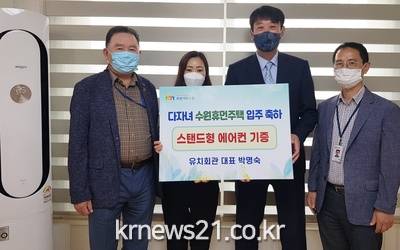 한편 박명숙 유치회관(음식점) 대표는 입주 하루 전인 9월 28일, 김씨 가족이 거주할 다자녀 수원휴먼주택을 찾아 스탠드형 에어컨(140만 원 상당)을 후원했다.