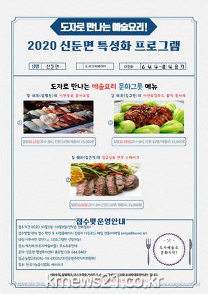 『 예술요리+문화그릇』은 10월 12일 1차시를 시작으로 총 3차시로 구성되며 1차시“이천쌀로 품어 초밥”, 2차시, “이천 로컬푸드 홀릭 동파육”, 3차시“임금님표 한우 스테이크” 로 이천지역 특산품을 주제로 유명 쉐프의 요리를 즐길 수 있으며, 레시피 공유와 음식시연 도자 테이블 셑팅까지 지역에 대한 새로운 관심과 매력에 빠져보는 시간으로 나이트 열차투어 등 풍성한 기획을 준비하였다. 신둔면 행정복지센터로 전화접수(644-8487)가 가능하며 자세한 일정은 시청홈페이지 알림사항을 참고하여 문의 할 수 있다.