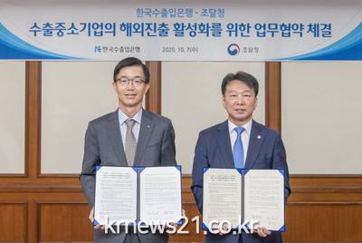 한국수출입은행(은행장 방문규, 이하 ‘수은’)이 7일 조달청과 ‘수출중소기업의 해외진출 활성화를 위한 업무협약’을 체결했다고 밝혔다.