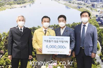 이에 이항진 여주시장은 “어려운 시기에 뜻을 모아 성금을 기탁해주셔서 진심으로 감사드린다.”며 “기탁해주신 성금은 취약계층을 위해 소중히 쓰겠다.”고 전했다.