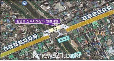 이 연결공사는 원도심 활성화를 위해 132억 원을 투입, 폭 11m, 길이 140m의 지하보도를 조성하고, 여기에 창업·전시·공연·휴게 공간 및 아트공방을 조성하는 사업이다.