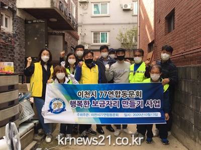 ▲ [사진제공 = 이천시]이천시 연합 77동문회(회장 오종범)는 13일 복지사각지대에 처해있는 저소득 독거어르신 세대에 집수리 봉사를 지원했다.