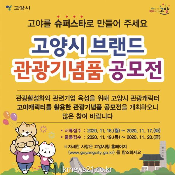 고양시(시장 이재준)는 관광 활성화와 관련 기업 육성을 위해 ‘고양시 브랜드 관광기념품 공모전’을 개최한다고 15일 밝혔다.