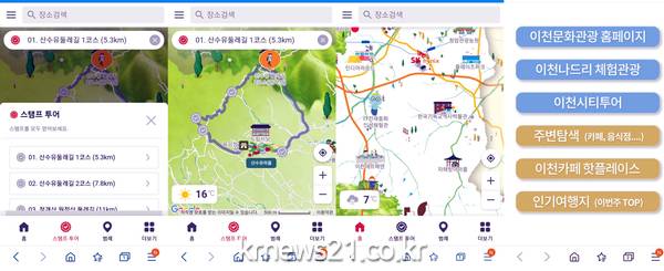 ▲ [이미지제공 = 이천시]시 전체 지도는 물론, 주요 관광지 정보를 스마트폰이나 PC에서 바로 볼 수 있는 서비스다. 스마트폰에 최적화되어 전용 어플을 별도 다운받을 필요 없이 네이버 등 포털에서 키워드로 검색하면 바로 접속할 수 있다.