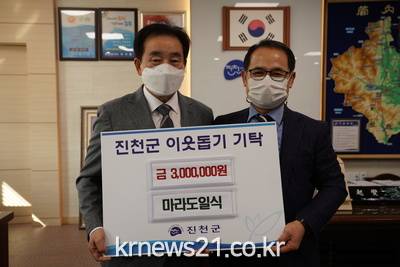진천군 광혜원면 소재 마라도일식 이준경 대표는 19일 진천군청을 찾아 관내 취약계층을 위해 사용해 달라며 기부금 300만원을 기탁했다.