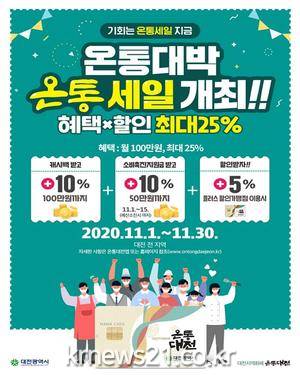 자치구 릴레이 행사 종료 후인 11월 11일부터 11월 30일까지는 대전 전 지역 온통대전 이용자로 확대해 자치구별 릴레이 행사와 동일하게 온통대전을 지급한다.