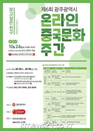 ▲ [사진=홍보포스터]광주광역시는 코로나19로 지친 시민들의 심신을 위로하고 중국과 우호를 다지는 제6회 중국문화주간 행사를 오는 24일부터 30일까지 온라인으로 개최한다.