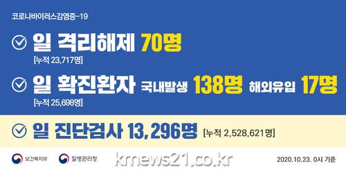 지역감염 사례는 138명, 해외유입은 17명이다.