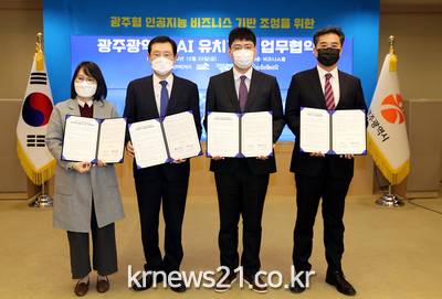 주요 협약내용은 ▲인공지능 클러스터 생태계 조성 및 비즈니스 플랫폼 구축을 위한 기술·정책 자문 ▲인공지능 분야 인재육성과 일자리 창출을 위한 광주법인, 연구소 및 지역사무소 신설 추진 ▲AI산업 생태계 조성을 위한 다양한 기업지원 프로그램 개발·운영 및 기업홍보 ▲인공지능 분야 전문인력 교육 및 취업 프로그램 기획·추진 등이다.