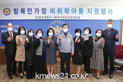 이날 행사에는 광주경찰서장, 광주시어린이집 연합회장 등 임원, 탈북민 등 20여명이 참석했으며 미취학 아동 1인당 10만원씩 지원했다.