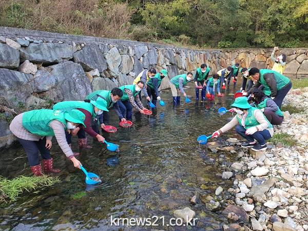 이날 행사에는 새마을회 회원, 주민자치센터 직원 30여 명이 참석한 가운데 상암천에 미꾸라지 20㎏을 방류하고, 환경정화 활동을 전개했다.