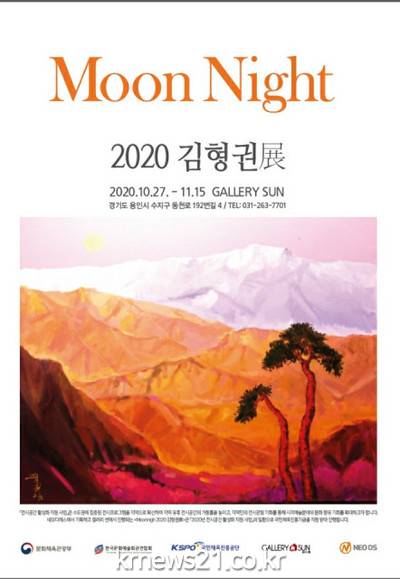 네오디에스가 기획하고 갤러리 썬에서 전시되는 ‘Moon Night 2020 - 김형권展’은 ‘2020년 전시공간 활성화 지원 사업’의 일환으로 국민체육진흥기금을 지원받아 진행된다. 이번 전시에는 2010년부터 2020년까지 직접 스케치여행 속에서 그린 달빛 풍경 속에서 발견한 시공을 초월한 느낌을 선사해 주는 지리산, 설악산, 두타산, 헝가리, 포르투갈, 베트남 등의 달밤 풍경들을 담고 있는 50여점의 유화(Oil on Canvas) 기법의 작품들이 출품된다.