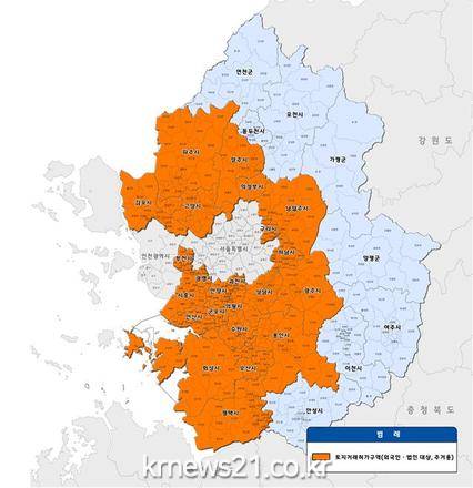 한편 경기도는 26일 경기도 도시계획위원회를 열고 도내 23개 시‧군 전역으로 전체면적 5,249㎢에 대해 외국인 등 및 국내 법인·단체의 주택이 포함되는 토지의 취득에 한해 토지거래허가를 받도록 심의‧의결했다.