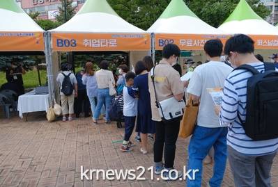취업관에서는 노원구 일자리 상담센터 등 9개 유관기관이 구직 등록 및 알선을 통해 구직자들에게 다양한 직종의 일자리 정보와 채용 기회를 제공한다. AI면접, VR면접, 면접사진촬영 퍼스널컬러 등의 체험존과 주얼리레터, 생활한복, 인테리어 소품 등을 판매하는 프리마켓도 함께 진행한다.
