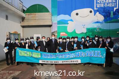제주여성교통봉사대는 시민, 학생 및 관광객들에게 마스크 500매를 배부하고 코로나19 예방을 위해 옷소매로 가리고 기침하기, 손씻기, 마스크 착용 등 예방수칙준수와 특히,대형마트, 전통시장, 관광지등 다중밀집지역 방문시에는 반드시 마스크를 착용하고, 발열과 호흡곤란등 증상이 있는 경우 관할보건소에 신고하여 안내를 받을 것을 홍보하였다.