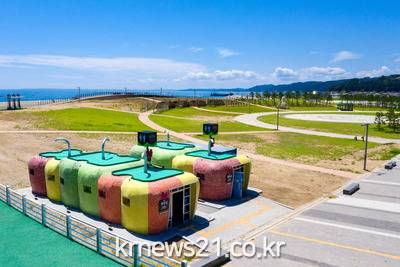 건축면적 140㎡로 지난해 2019년 조성된 해파랑 공원 공중화장실은 개성 있는 파프리카 디자인으로 밝고 친근한 느낌이 물씬 들게 자연환경과 조화를 이룰 수 있도록 만들어져 영덕군 대표 캐릭터 ‘덕이 대장’을 나타내 화장실 시인성과 영덕군만의 특색을 표현했다.