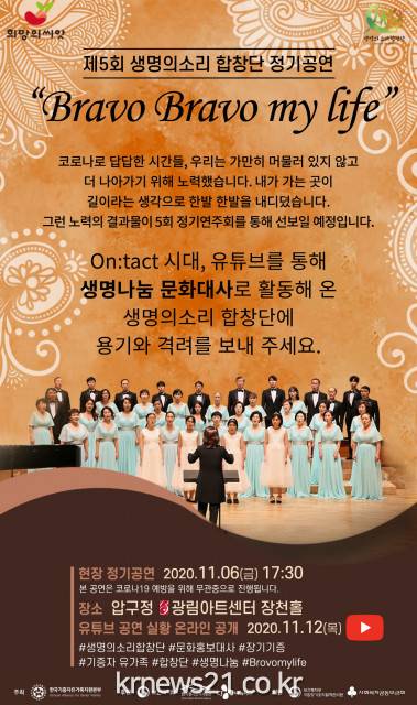 코로나로 지치고 힘든 국민들을 위해 이번 정기공연의 주제를 ‘Bravo my life’로 정했고, 생명나눔의 하모니를 통해 희망과 용기를 전할 예정이다.