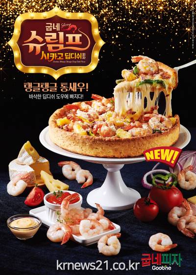 '굽네 슈림프 시카고 딥디쉬 피자'는 토핑으로 씹히면 탱글탱글한 맛이 일품인 큼직한 통새우가 한 조각 당 한 개씩 들어가 있다. 도우로는 깊은 접시 모양이 특징인 딥디쉬 도우를 사용했다. 딥디쉬 도우는 바삭한 식감이 두드러져 피자 끝부분까지 맛있게 먹을 수 있다. 여기에 매콤한 아라비아따 소스를 바르고 모짜렐라, 브리크림, 엔젤헤어체다, 파마산 치즈 총 4가지 치즈를 올려 부드러운 풍미를 더했다. 크림의 풍부하고 고소한 맛에 톡톡 터지는 날치알이 특징인 날치알 크림소스가 뿌려져 있어 먹는 즐거움을 준다. 가격은 19,000원이다.