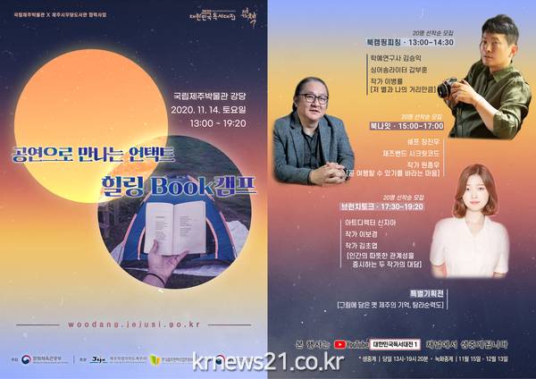 ▲ [사진=홍보포스터]제주시 우당도서관(관장 김철용)과 국립제주박물관(관장 김유식)은 2020 대한민국 독서대전을 마무리하며「공연으로 만나는 언택트! 힐링 Book 캠프」를 11월 14일(토) 국립제주박물관 강당에서 개최한다.