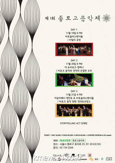 한국의 역사를 고스란히 간직하고 있는 서울의 중심인 종로에서 우리의 고유 음악인 정가와 서양의 옛 음악인 바로크 음악이 서로의 시대와 감성을 공유하는 음악제로 3일 동안(11월 19일~21일) 펼쳐진다.