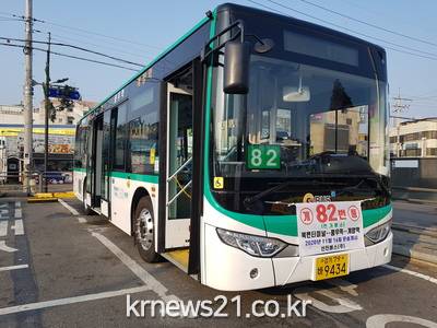 ▲ [사진제공 = 김포시]북변환승센터에서 풍무역~풍무5지구~계양역을 운행하는 82번 시내버스 노선이 16일부터 운행을 시작했다.