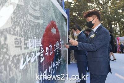 ▲ [사진제공 = 영덕군]장사상륙작전 전승기념관 준공식이 16일 장사상륙작전 전승기념공원 광장에서 열렸다.