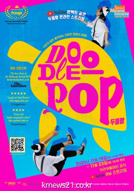 ▲ [사진=홍보포스터]서울문화재단(대표이사 김종휘)과 한국무역협회(회장 김영주)는 ‘서울메세나 지원사업-한국무역협회 스페셜트랙’에 선정된 매직 드로잉쇼 ‘두들팝’(브러쉬씨어터 유한책임회사)을 19일(목)부터 26일(월)까지 온라인을 통한 무료 공연으로 선보인다.