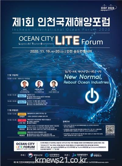 ▲ [사진=홍보포스터]인천광역시(시장 박남춘)는 해양수산부(장관 문성혁)와 공동 주최하고, 인천항만공사(사장 최준욱)가 주관하는‘제1회 인천국제해양포럼(IIOF 2020)’이 11월 19일 인천 송도컨벤시아에서 개막해 20일까지 양 일간의 일정으로 열린다고 밝혔다.
