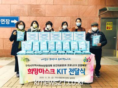 ▲ [사진제공 = 구리시]구리시(시장 안승남)는 11월 20일 구리시지역사회보장협의체(민간위원장 유경석) 주관으로 코로나19 예방을 위해 관내 다문화 및 이주가정, 드림스타트 아동 75명에게 KF94 방역용 마스크 1,500장과 마스크 줄 75개를 전달했다.