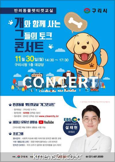 한편 이번 행사는 코로나19 방역 수칙을 철저하게 준수하며 교육의 집중도를 높이기 위해 반려동물 동반 시 입장이 제한된다. 행사 당일 구리시 공식 유튜브 해피GTV를 통해 실시간 시청도 가능하며 방송 종료 후에도 해피GTV에서 다시 볼 수 있다.