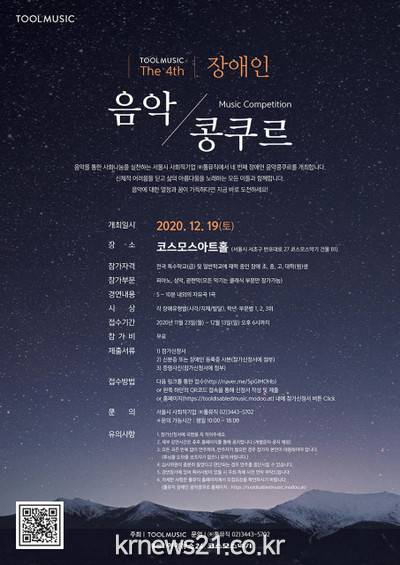 ▲ [사진=홍보포스터]서울시 사회적기업 툴뮤직이 주최하는 ‘제4회 툴뮤직 장애인 음악콩쿠르’가 12월 19일 토요일 서울 서초구 코스모스악기 건물에 위치한 코스모스아트홀에서 열린다.