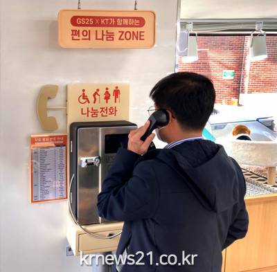 ▲ [사진제공 = GS리테일]편의점 GS25에 공중전화를 기반으로 한 KT ‘나눔전화’가 개통된다.