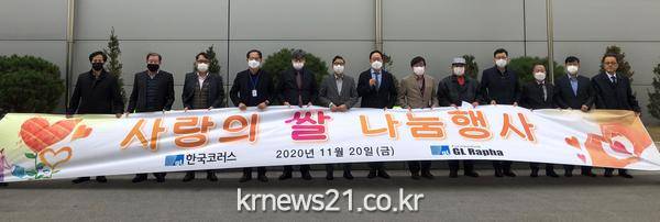 한국코러스㈜(대표 황재간)가 제천시에 사랑의 쌀 3,000kg(백미10kg 300포)를 기탁했다.