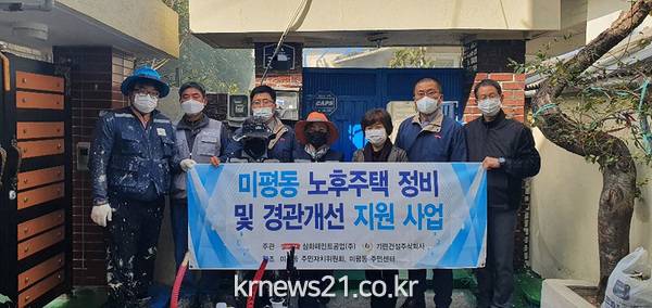 더불어 행복한 미평동(동장 최재영)에서 기린건설 봉사단과 손을 잡고 6개월에 걸쳐 저소득층 노후주택 9채를 무료로 도색해 눈길을 끌고 있다.