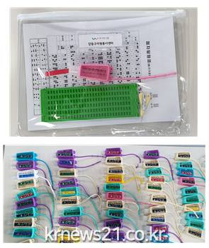 ▲ [사진제공 = 강동구]강동구(이정훈 구청장)가 강일중학교 학생들과 함께 코로나 시대 시각장애인을 위한 손소독제 점자라벨 제작 봉사활동을 진행했다.