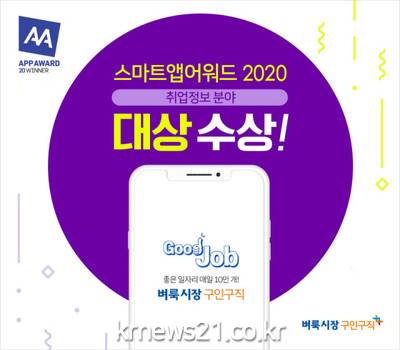 ▲ [이미지제공 = 미디어윌]생활밀착 일자리를 제공하는 벼룩시장구인구직(대표 장영보)이 ‘스마트앱어워드 2020’에서 취업정보분야 대상을 수상했다고 1일 밝혔다.