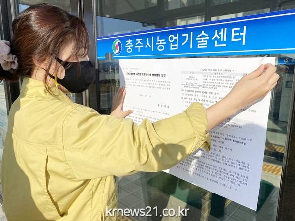 이번 행정명령은 충주지역 사과, 배, 복숭아 농가와 농작업자, 과수 농자재와 묘목 등을 취급하는 관련 산업 종사자를 대상으로 한다.