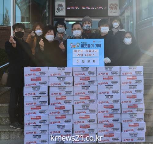 광주시 퇴촌면에 소재한 이헌교회 박승문 담임목사와 신도 일동은 최근 퇴촌면 행정복지센터를 방문, 관내 복지사각지대에 놓인 소외계층에게 전달해 달라며 라면 40박스를 기탁했다.