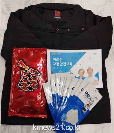 이번 지원물품은 반사띠가 부착된 방한복 한 벌과 마스크 및 핫 팩 각각 10개씩이다. 함께 배부되는 교육자료에는 어르신들이 수집활동 중 유의해야 할 안전수칙 및 교통사고 예방법 등이 실려 있다.