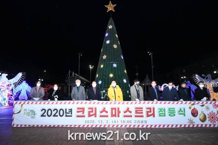 ▲ [사진제공 = 구리시]구리시(시장 안승남)는 지난 2일 구리광장에서 안승남 구리시장, 김형수 구리시의회 의장, 송영만 구리시기독교연합회장 등이 참석한 가운데, 코로나19로 지친 시민들을 위로하는 ‘2020년 크리스마스트리 점등식’을 가졌다.
