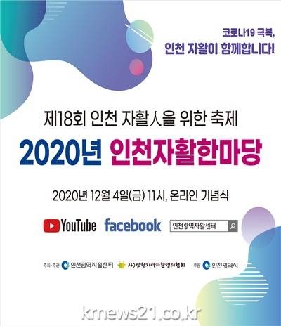 ▲ [사진=홍보포스터]인천광역시(시장 박남춘)는 인천 자활인을 위한 축제‘2020년 인천 자활한마당’이 인천자활사업 20주년을 맞이하여 12월 4일 오전 11시에 온라인 행사로 개최했다고 밝혔다.