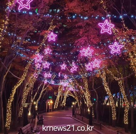 대구 중구 국채보상운동기념공원과 2·28기념중앙공원 가로변에 설치된 하트조명과 하트터널, 수목은하수, 종각네거리의 코로나19 극복을 위한 희망문자가 화려한 빛으로 시민들의 눈길을 사로잡고 있다.