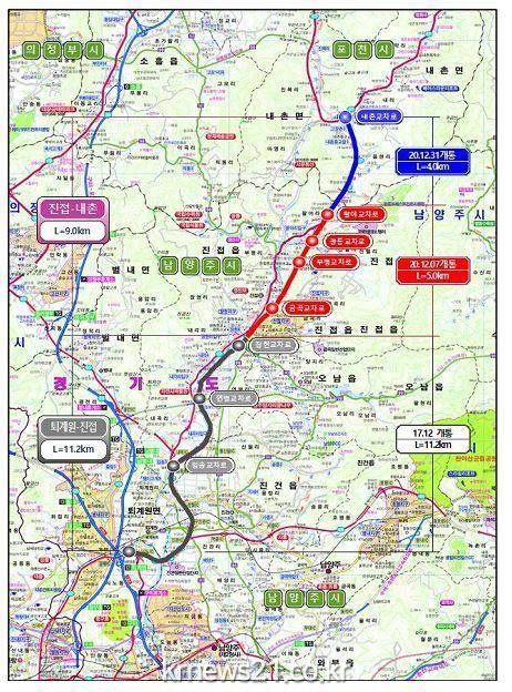 이번에 개통되는 구간은 잦은 신호교차로로 출·퇴근 시간 상습정체를 빚고 있는 국도 47호선 진접읍 시가지 통과구간을 우회하는 도로(4차로 신설)로서, 2013년 4월 착공 이후 약 8년 동안 총 2170억원의 사업비를 투입해 완성하게 됐다.