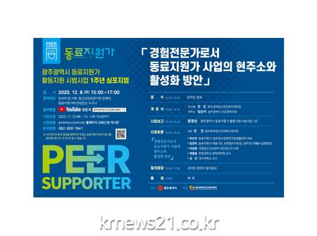 ▲ [사진=홍보포스터]광주광역시는 ‘정신질환자 동료지원가 사업’의 실태를 점검하고 활성화 방안을 모색하기 위해 8일 정신보건 관련 의료·법률·학계 등 전문가가 참가하는 비대면 심포지엄을 개최한다.