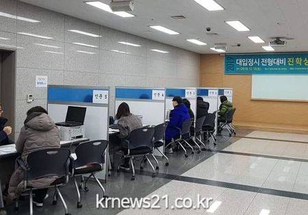 수험생 1인 당 40분간 무료로 상담이 이루어지며 합격 가능 대학과 학과를 찾아 정시전형 원서를 작성하는 데 도움을 받을 수 있다.
