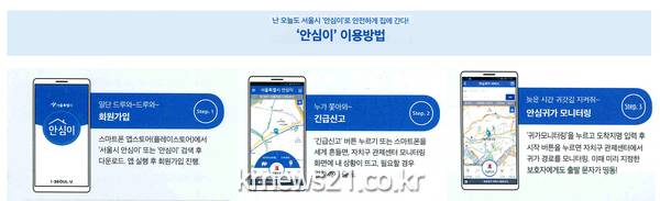‘안심이’ 앱은 △긴급신고 △안심귀가모니터링 △안심귀가스카우트 연계 등 기능을 갖추고 있다.