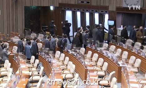 한편, 10일부터 국정원법 개정안에 대한 필리버스터를 이어온 국민의힘은 이날 토론이 중지되자 본회의장에서 전원 퇴장하며 항의했다.