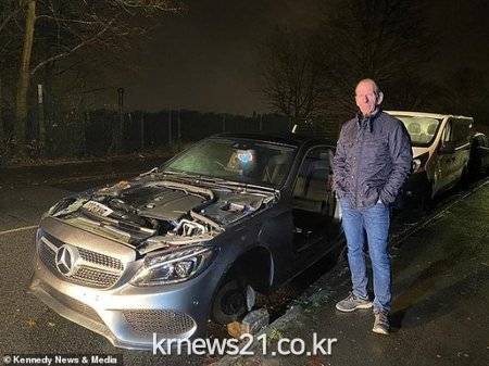 ▲ [사진=Kennedy News & Media]영국에서 집 앞에 주차한 벤츠 차량이 하룻밤 사이 분해돼 부품은 모두 도둑맞고 뼈대만 남는 황당한 사건이 일어났다.