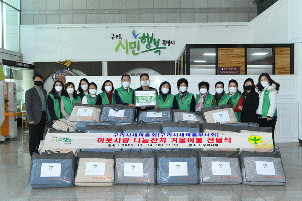 ▲ [사진제공 = 구리시]구리시(시장 안승남)에서는 지난 15일 시청 2층 복지회의실에서 구리시새마을회(회장 곽경국) 주관으로 ‘이웃사랑 나눔 잔치’ 겨울 이불 전달식을 가졌다.