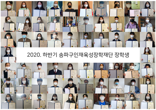 ▲ [사진제공 = 송파구]송파구(구청장 박성수)는 구 출연기관인 (재)송파구인재육성장학재단(이하 송파장학재단)에서 2020년 하반기 62명의 장학생을 선발해 장학금 7천5백만 원을 지원한다고 22일 밝혔다.